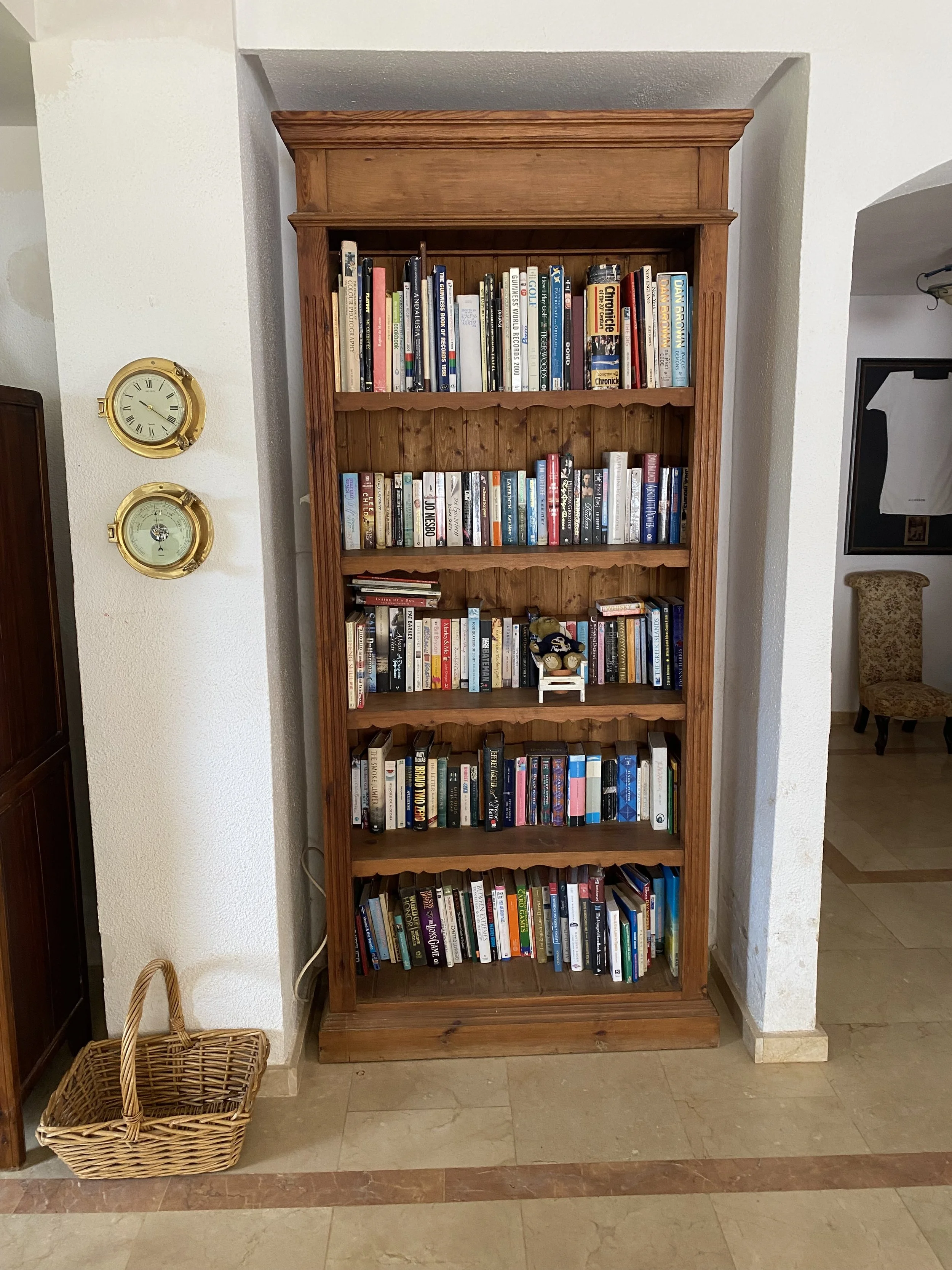 The magnificent lounge forms the elegant heart of the villa, featuring impressive vaulted ceilings that create a bright, airy, and truly spacious atmosphere. With ample, supremely comfortable seating for up to 12 guests — including a luxurious leather La-Z-Boy extendible sofa set — it offers the perfect setting for relaxed family gatherings or sophisticated entertaining. A large Smart TV, elegant bookcases, and a stylish cocktail cabinet add thoughtful touches of modern convenience and hospitality.