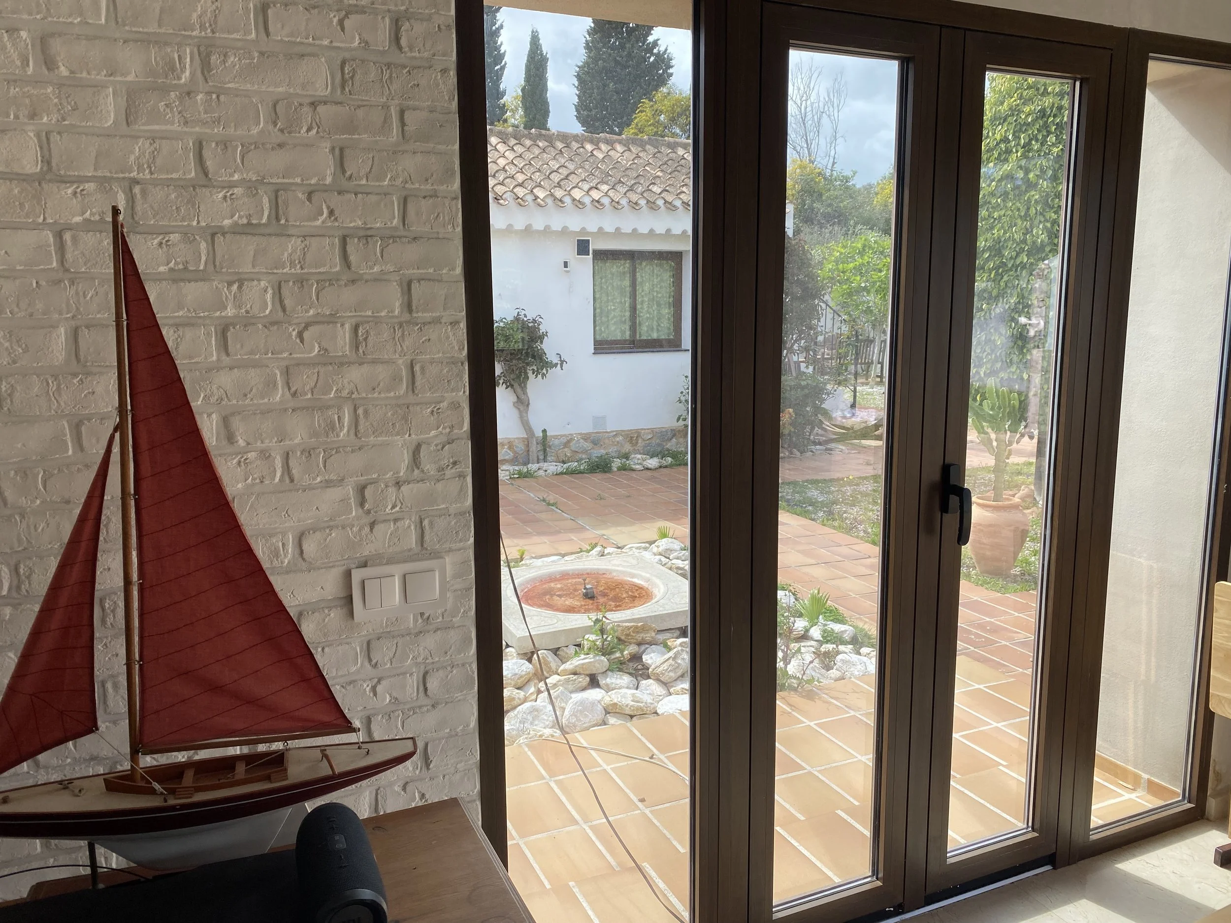 The wide sliding patio doors open directly onto the front lawn and a graceful French window leads seamlessly to the sunny patio, beautifully connecting the refined interior with the stunning outdoor surroundings.