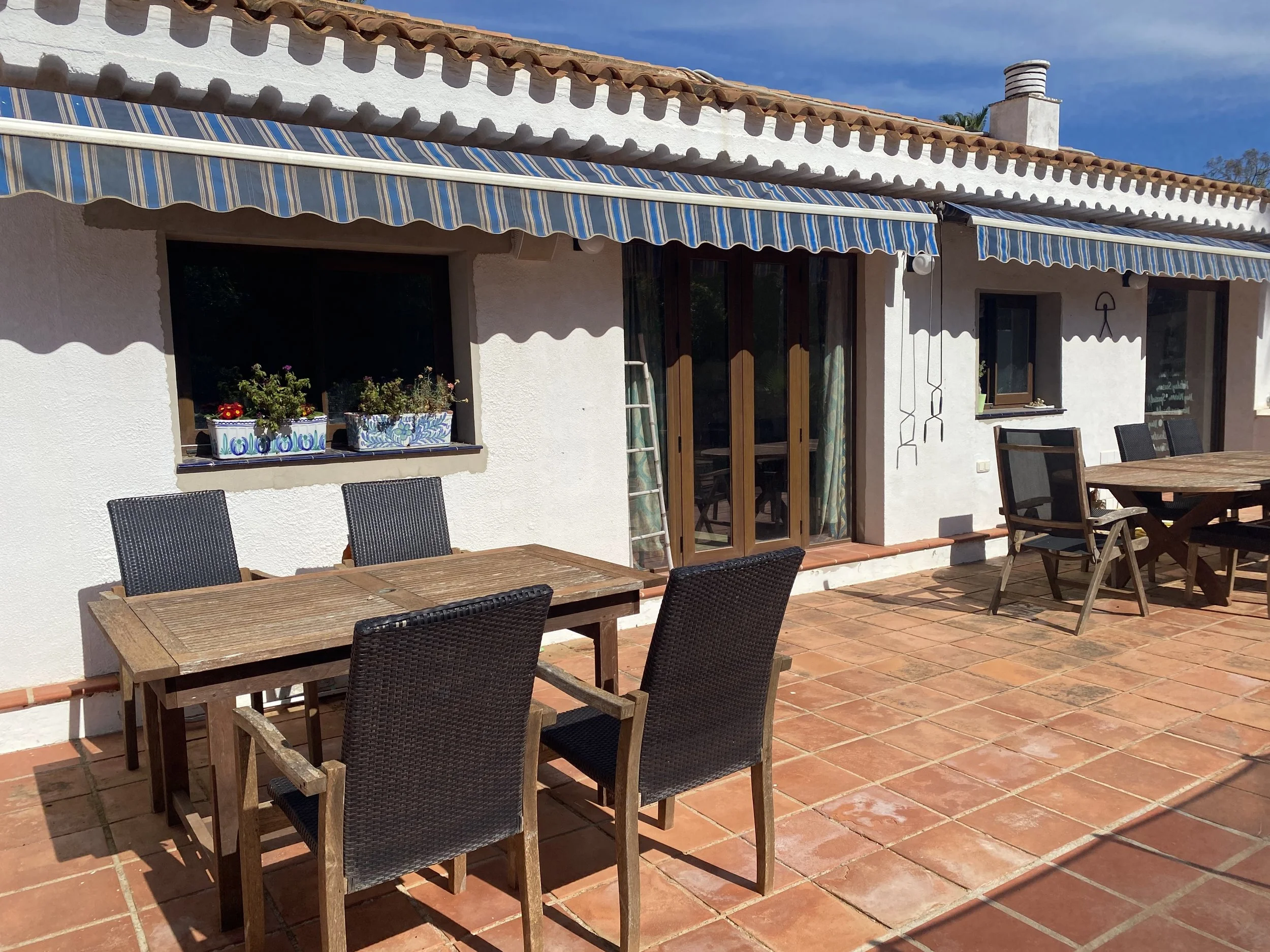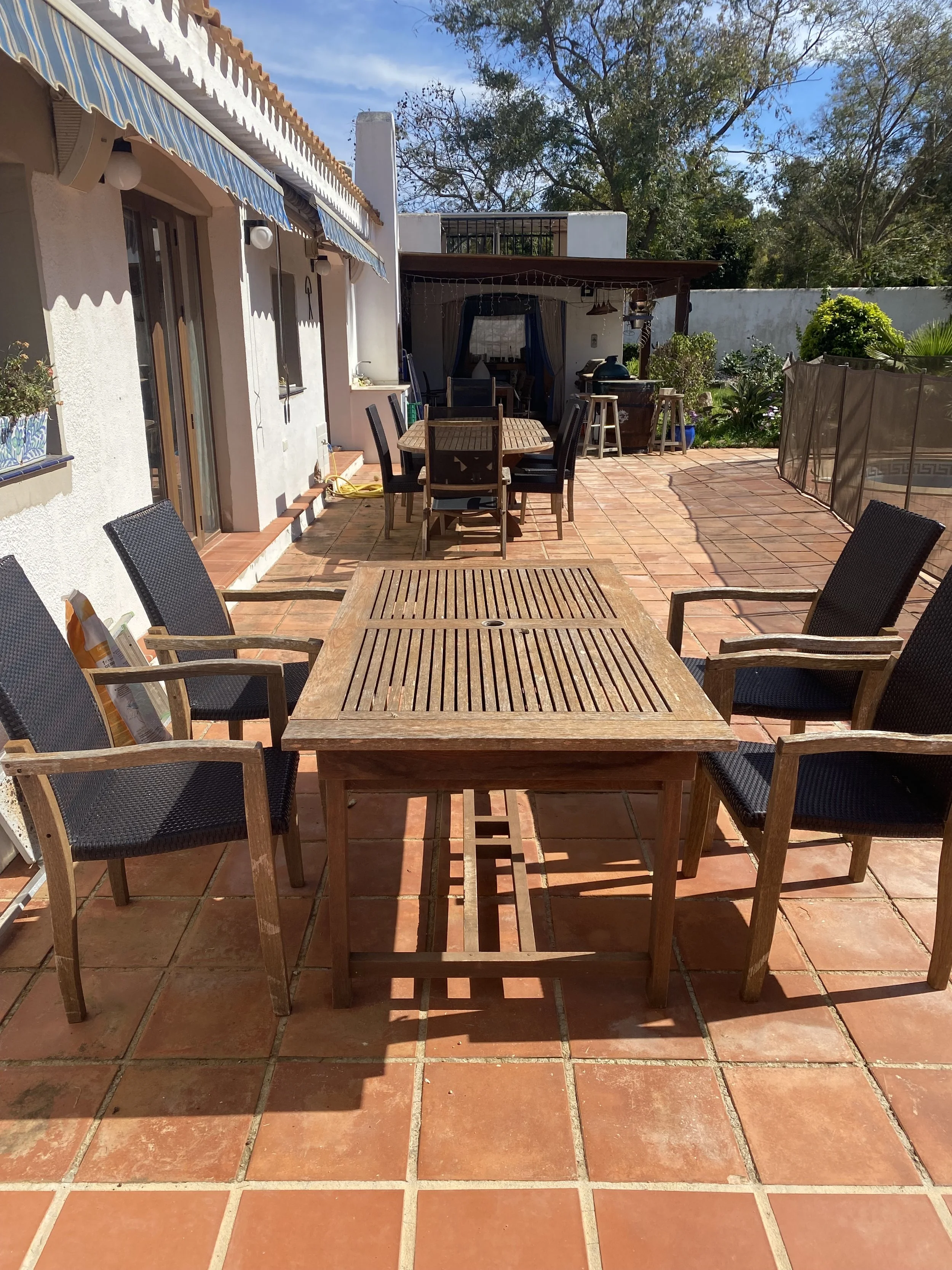 The villa boasts a selection of beautiful patios and terraces, each offering its own distinct charm and purpose. The main poolside patio is spacious and inviting, featuring two elegant tables with comfortable seating for up to twelve guests — ideal for lively al fresco lunches or sunset dinners. Generous double awnings provide welcome shade from the midday sun, ensuring the area remains cool and comfortable throughout the day.