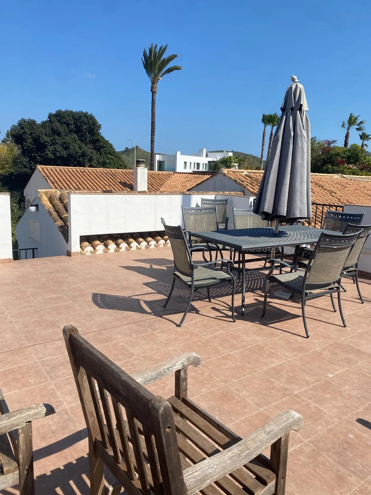 The sun-drenched roof terrace offers a peaceful retreat perfect for lounging under the Spanish sky or catching a refreshing breeze with panoramic views.